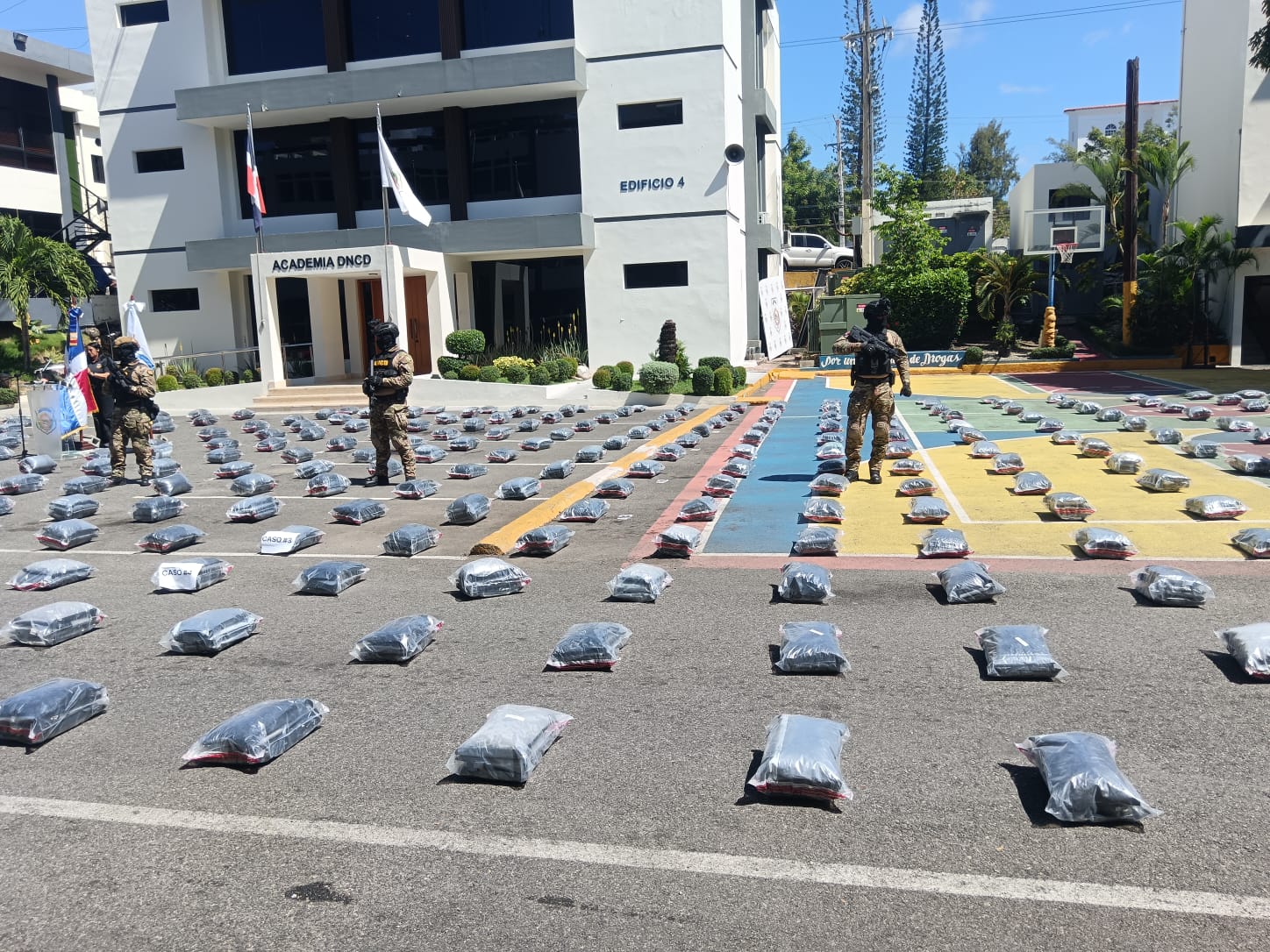 efectivos de la Armada de República Dominicana la Fuerza Aérea agencias de Inteligencia del Estado, apoyados por la Administración de Drogas de Estados Unidos (DEA) y otros organismos internacionales, bajo la coordinación del Ministerio Público, incautaron otro cargamento de 450 paquetes de presunta cocaína, durante una ardua labor de persecución en contra de una narcolancha, que duró poco más de 12 horas.