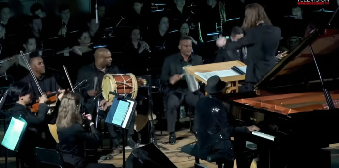 Durante el concierto, el maestro dominicano Ramón Orlando interpretó como solista el piano, frente a una orquesta integrada por setenta y cinco músicos del Conservatorio Tchaikovsky, con la dirección artística del maestro ruso Vyacheslav Valeev y la dirección de programa del maestro ruso Ilya Markeev, reforzados por seis músicos dominicanos.