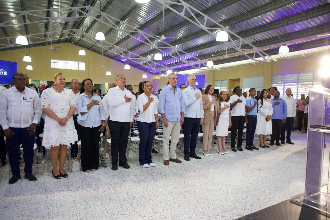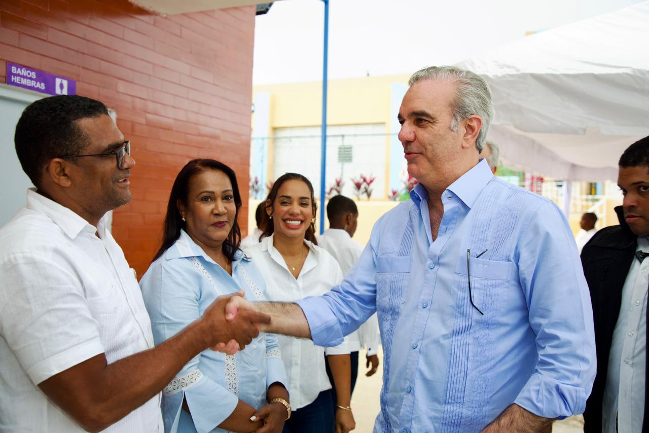 El presidente Luis Abinader, en conjunto con el ministro de Educación, Luis Miguel De Camps, encabezó este sábado la inauguración de la Escuela Básica Comunitaria Barrio Lindo, en Santo Domingo Norte, un centro educativo que beneficiará a 900 niños y niñas de la comunidad.