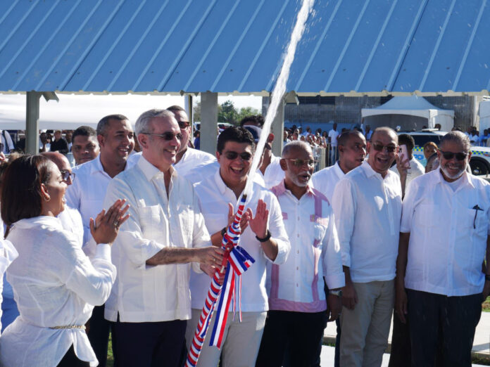 El Naranjo, Santo Domingo Este. – El Presidente Luis Abinader, junto al director general de la Corporación del Acueducto y Alcantarillado de Santo Domingo (CAASD), ingeniero Fellito Suberví, puso en servicio la Ampliación del Acueducto Oriental Barrera de Salinidad que aportará 136 millones 945 mil galones diarios de agua potable en beneficio de casi dos millones de habitantes de los municipios Santo Domingo Este y Norte, de la provincia Santo Domingo.